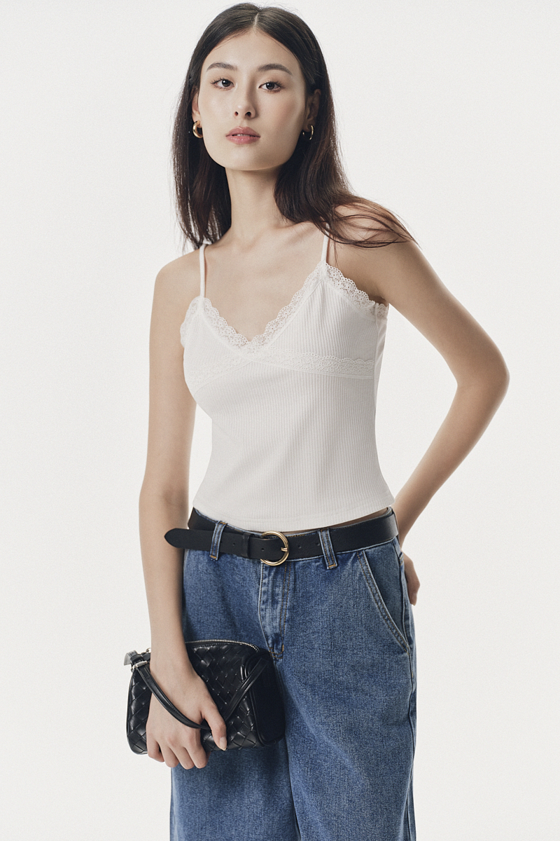 - Chi tiết: Áo hai dây dáng ôm, cổ rộng, có viền ren cổ và cup ngực. Dây áo có tăng đơ điều chỉnh