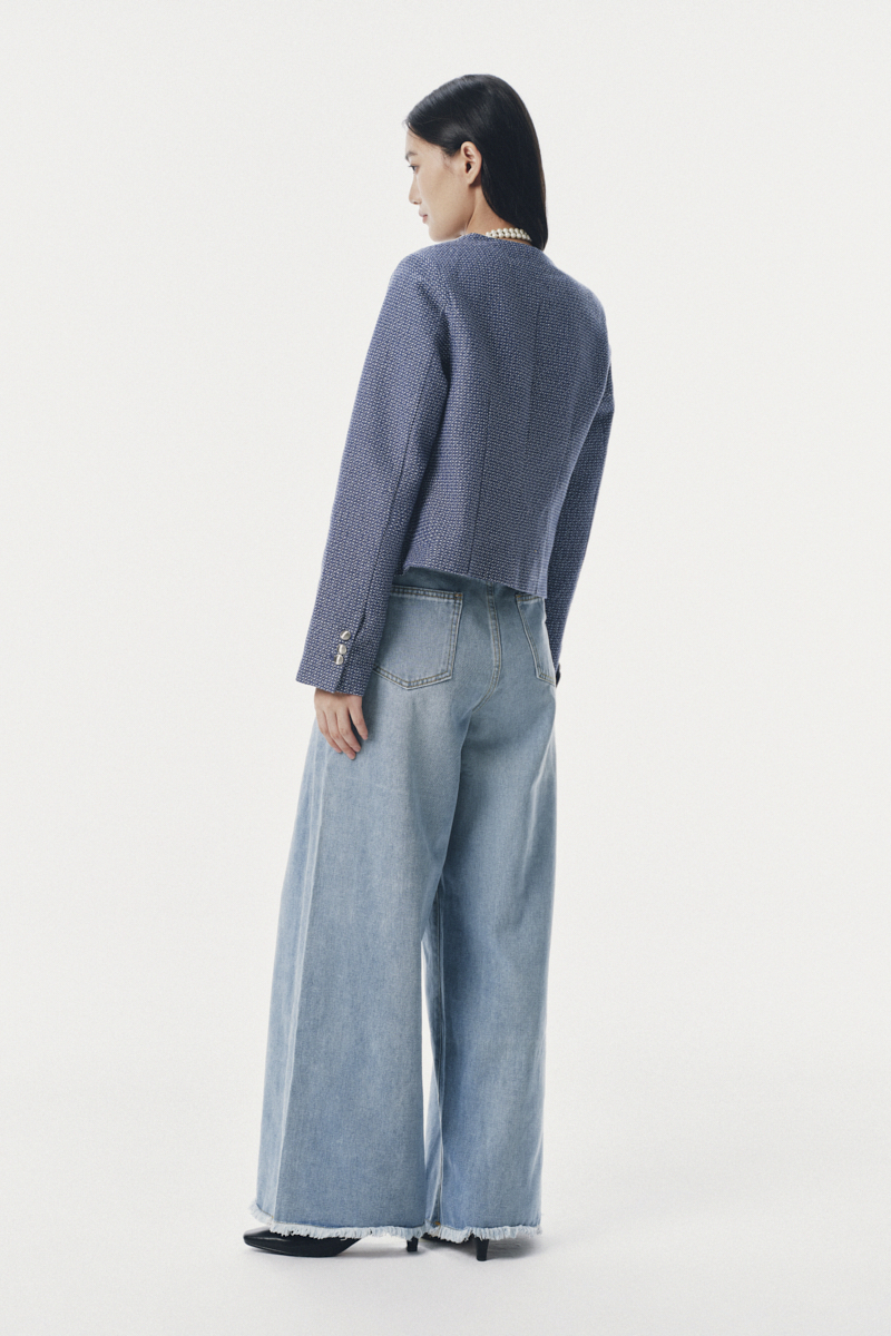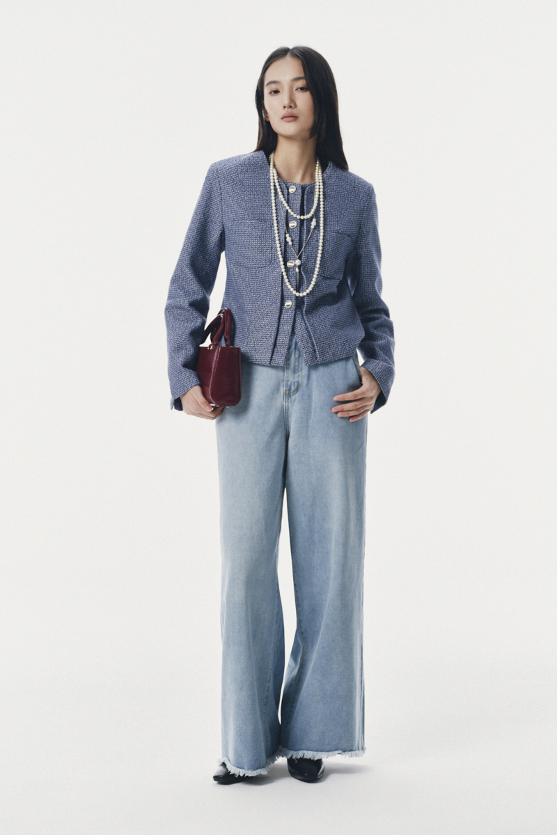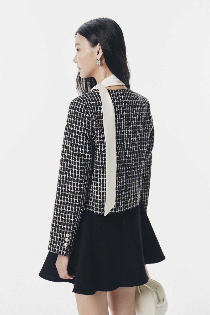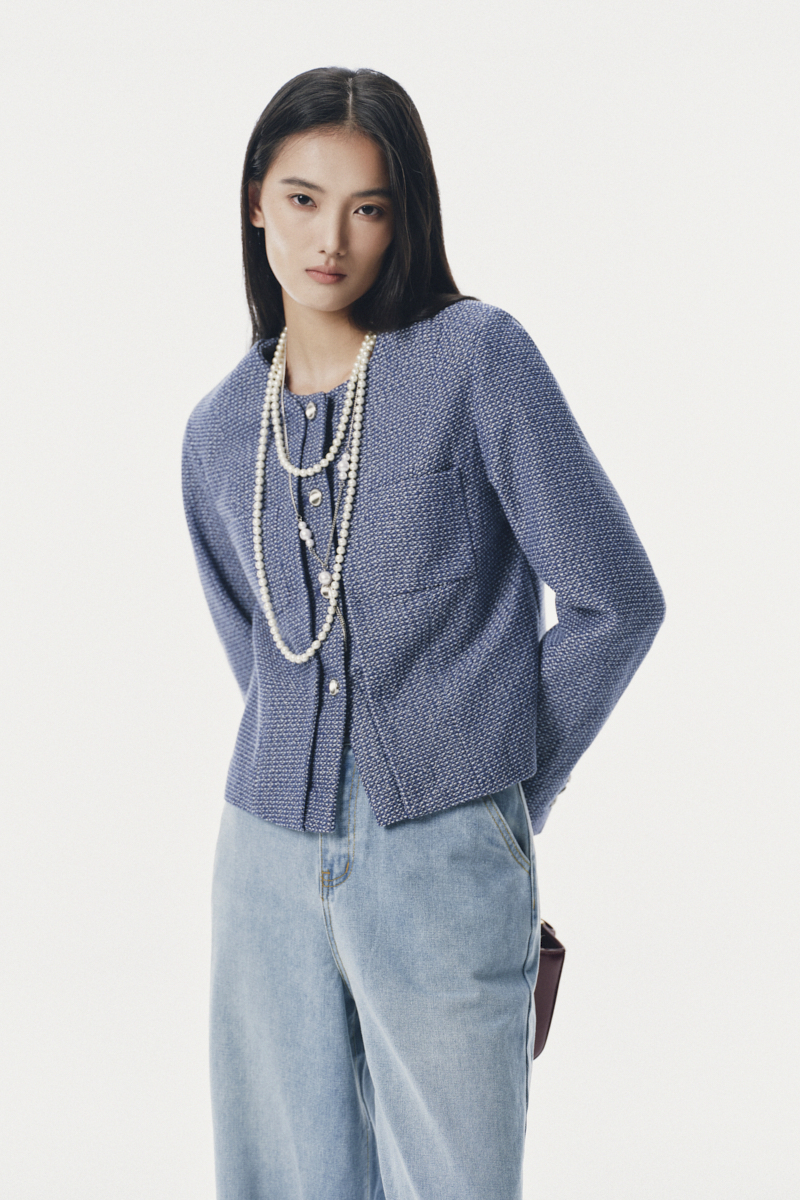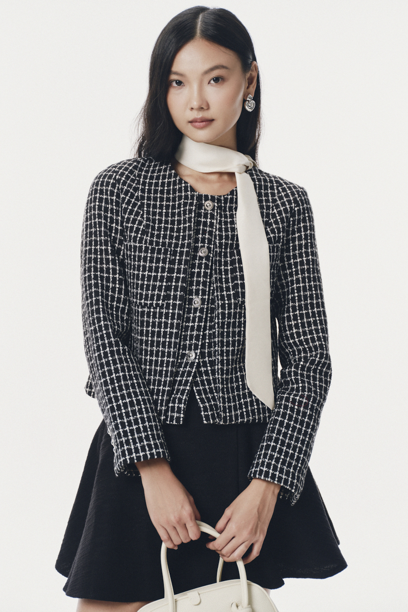 - Kiểu dáng: Áo khoác tweed dáng suông đứng