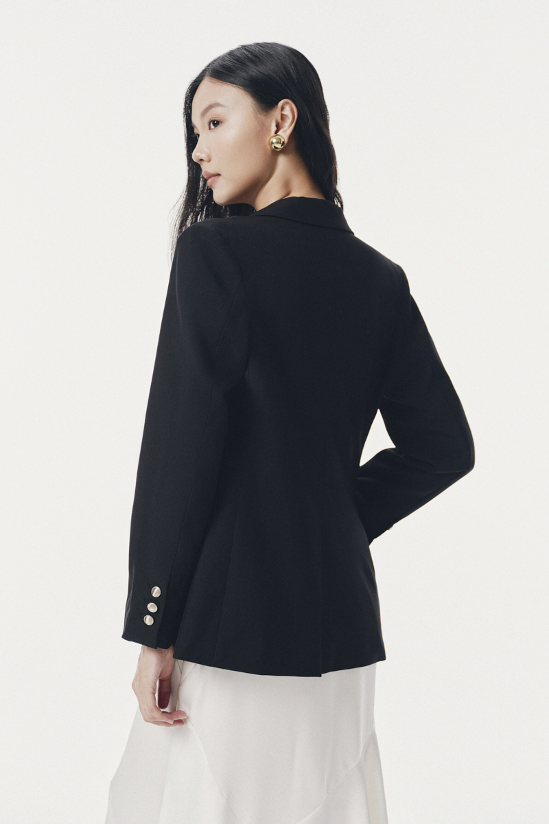 Áo khoác vest dài tay giao 2 hàng khuy với cúc trang trí