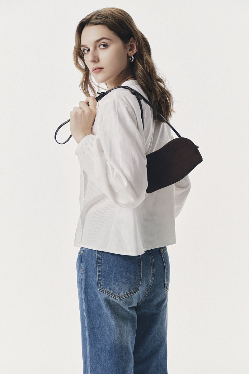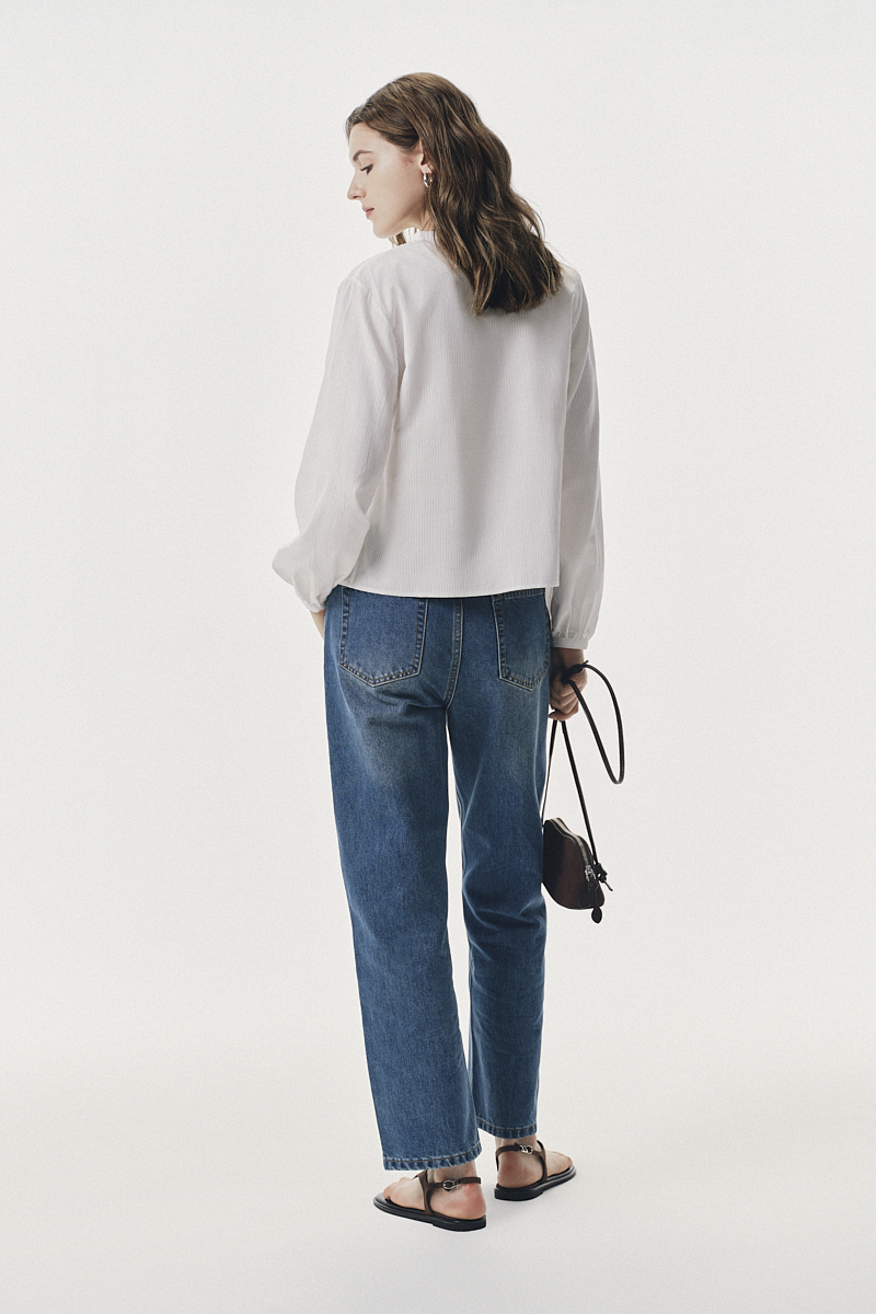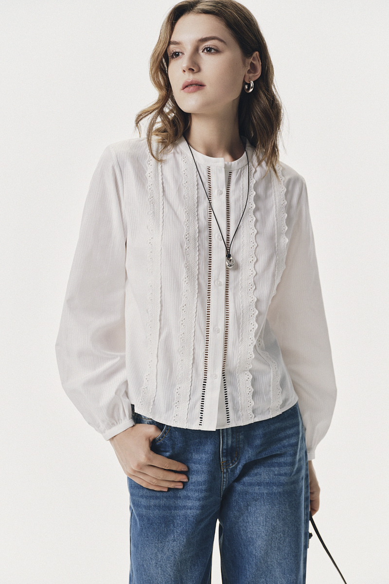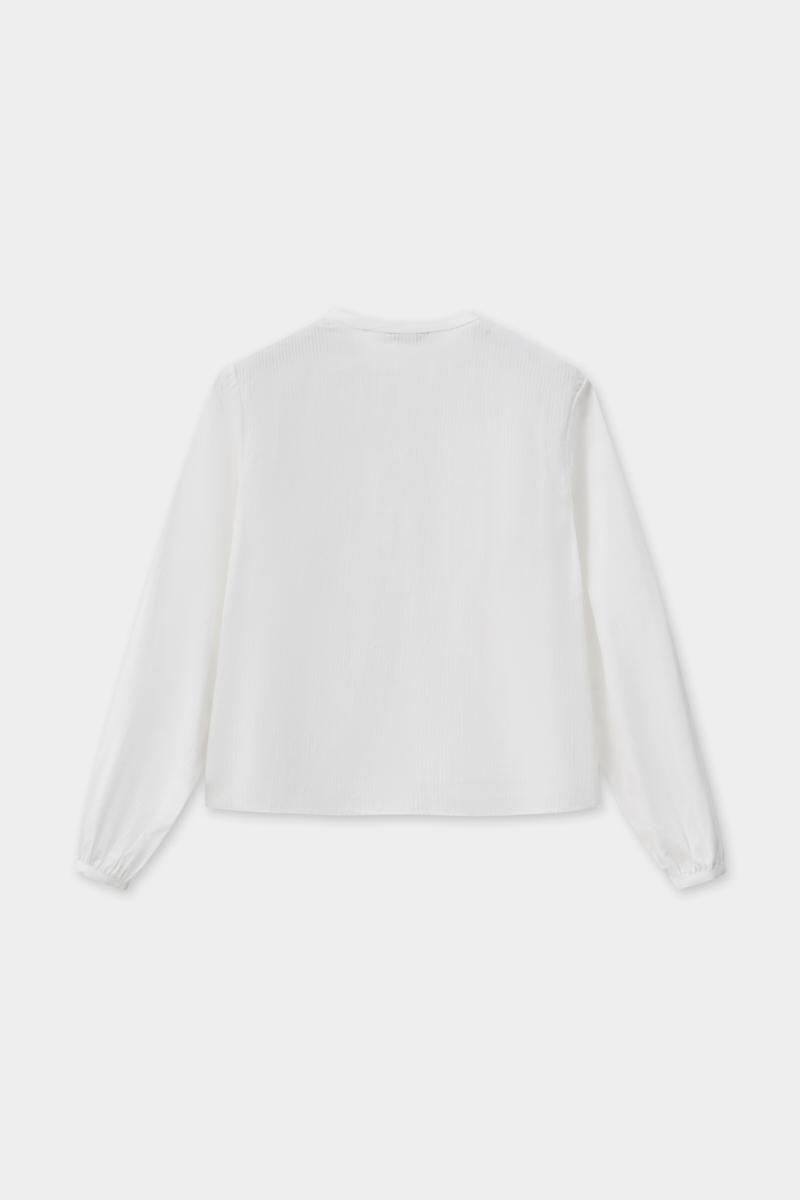 Áo kiểu dài tay bề mặt kẻ chìm phối dây ren