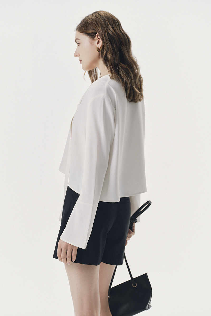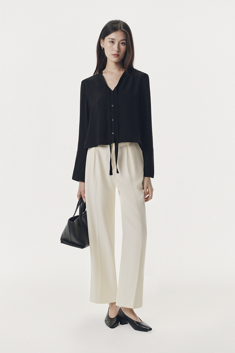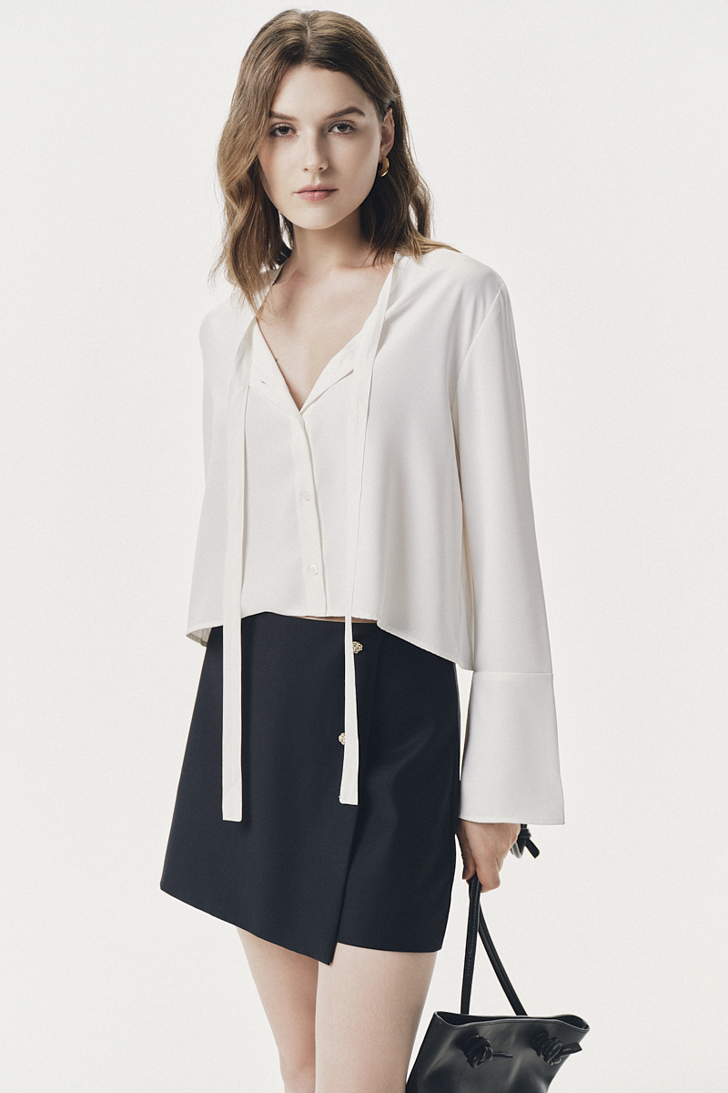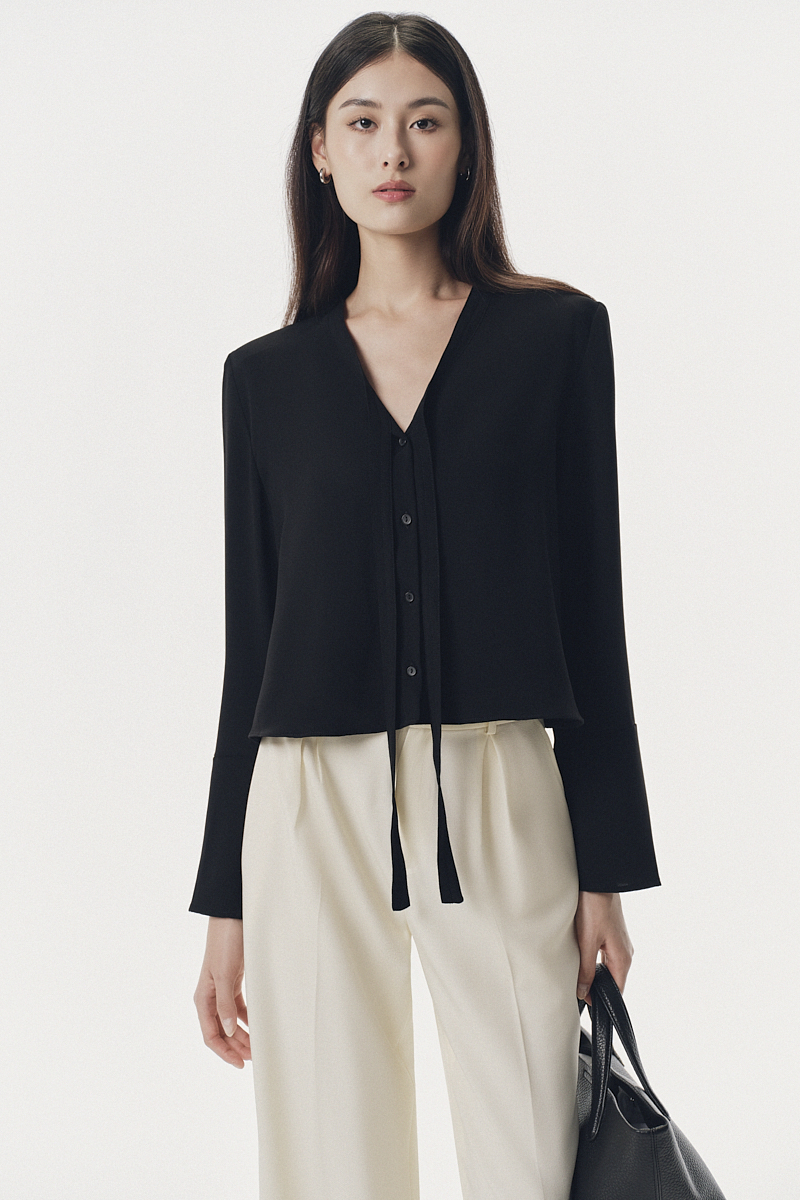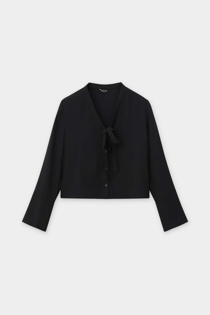 Áo kiểu dài tay buộc dây dáng ngắn