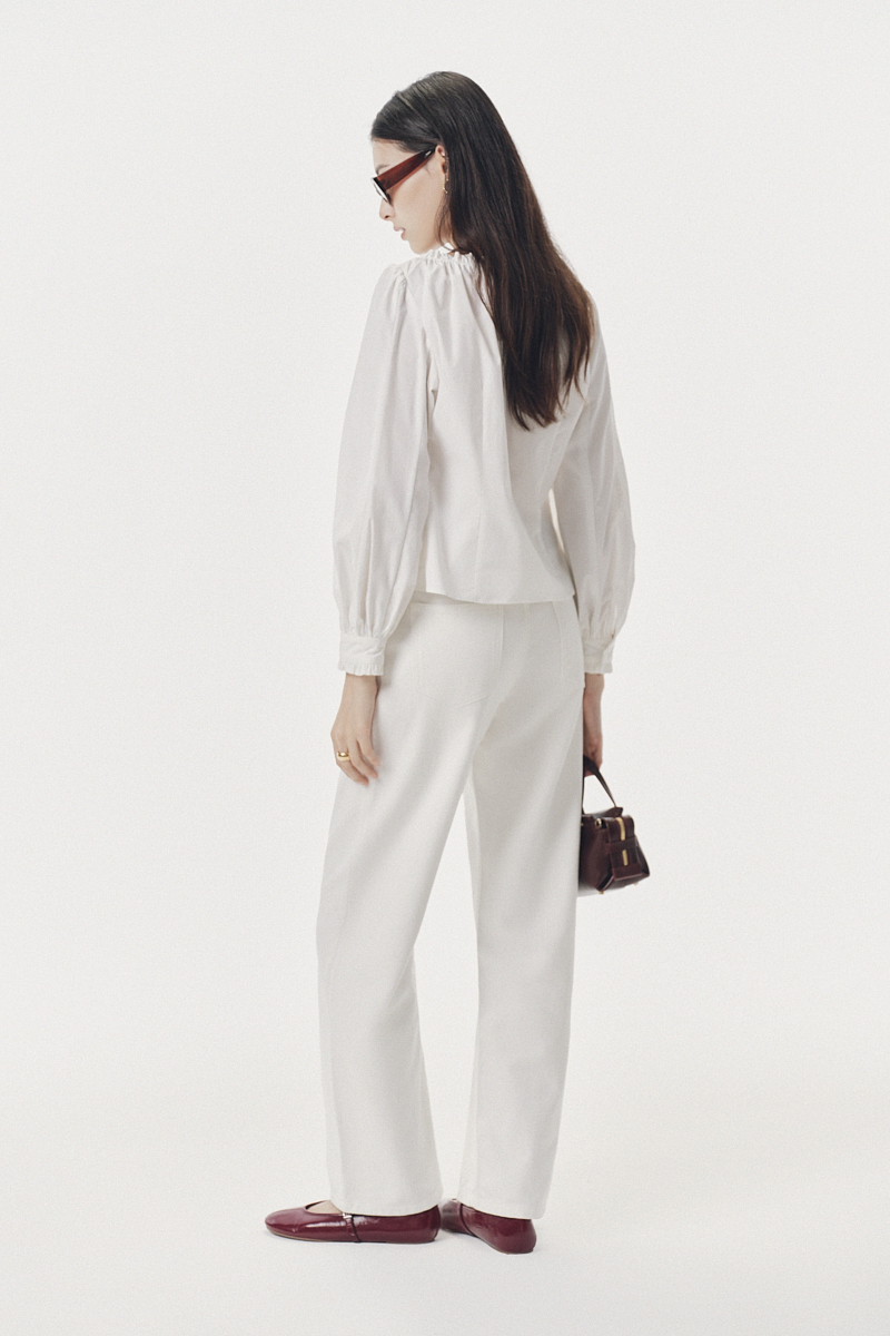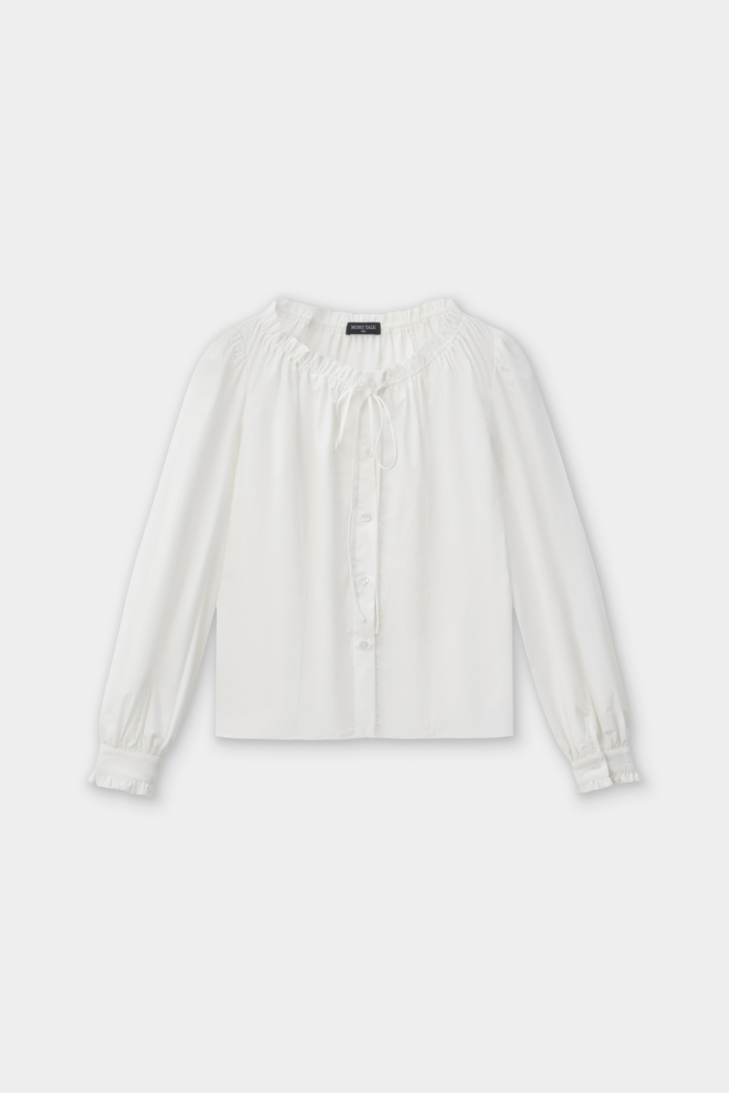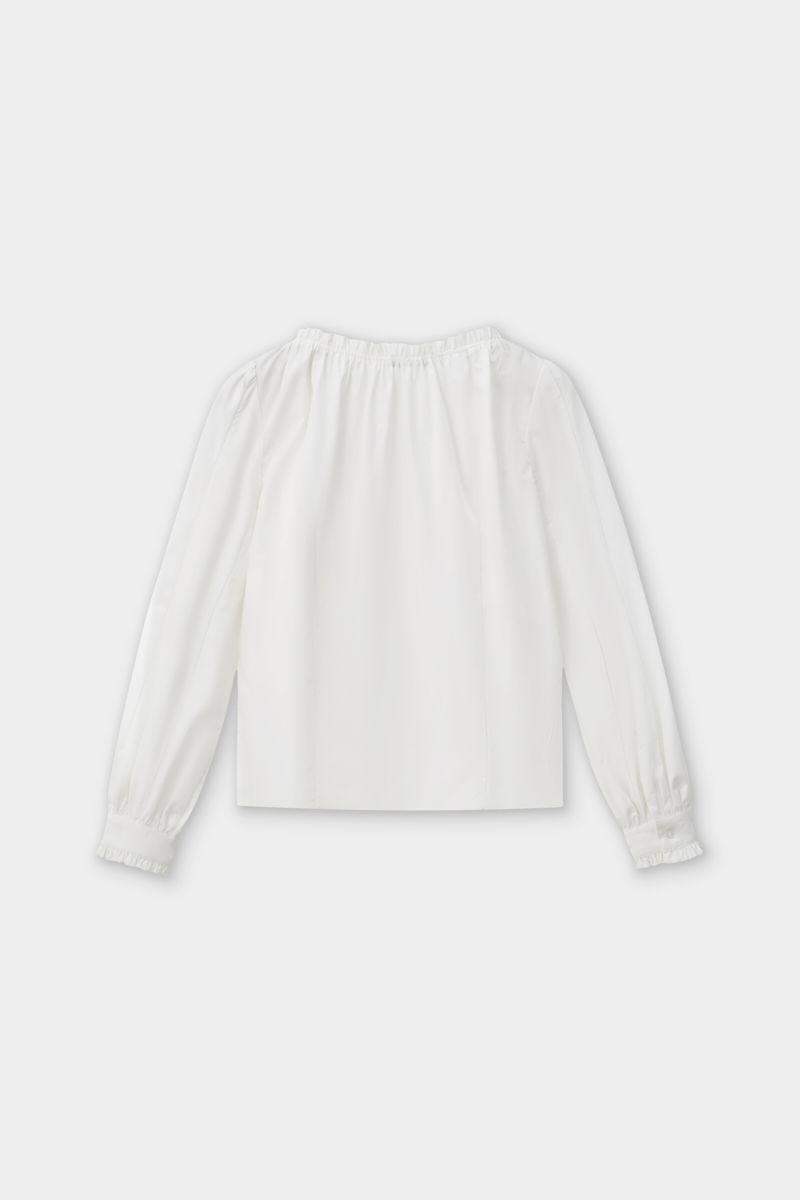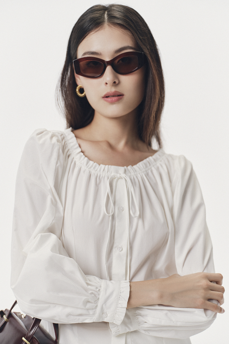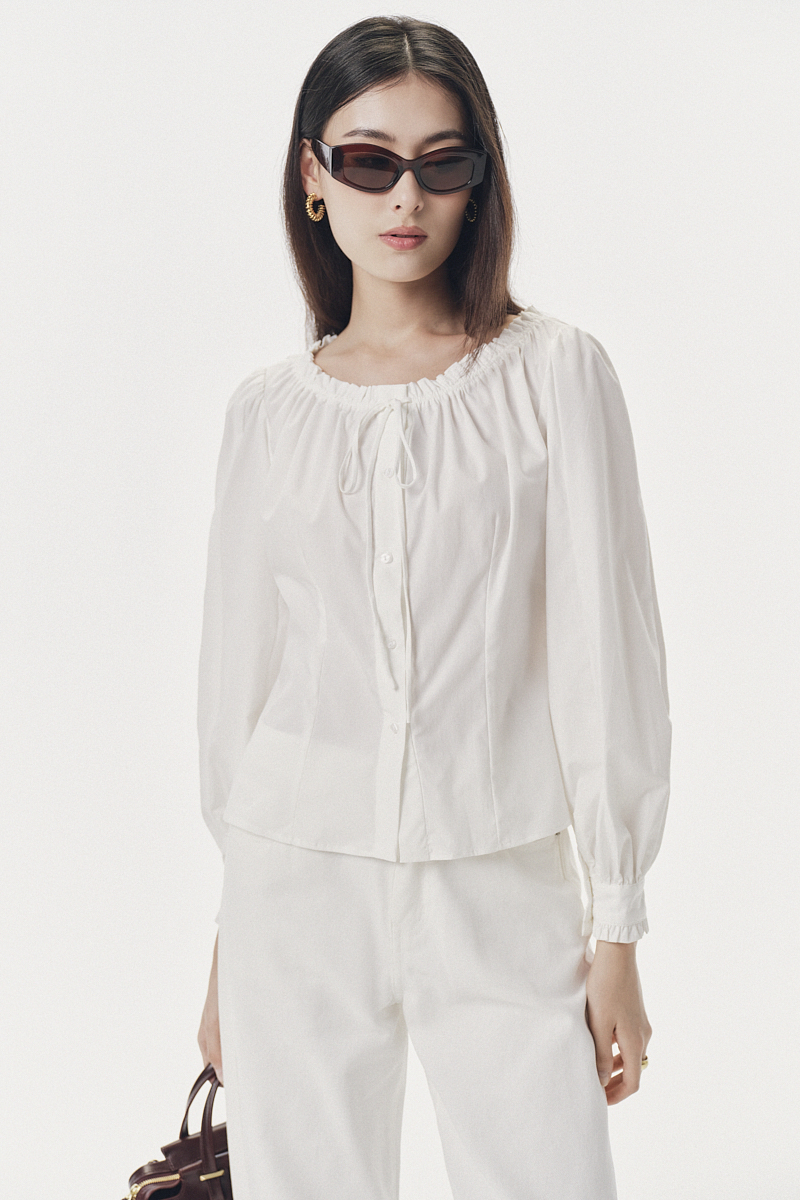 Áo kiểu dài tay dáng eo nhẹ rút nhún cổ
