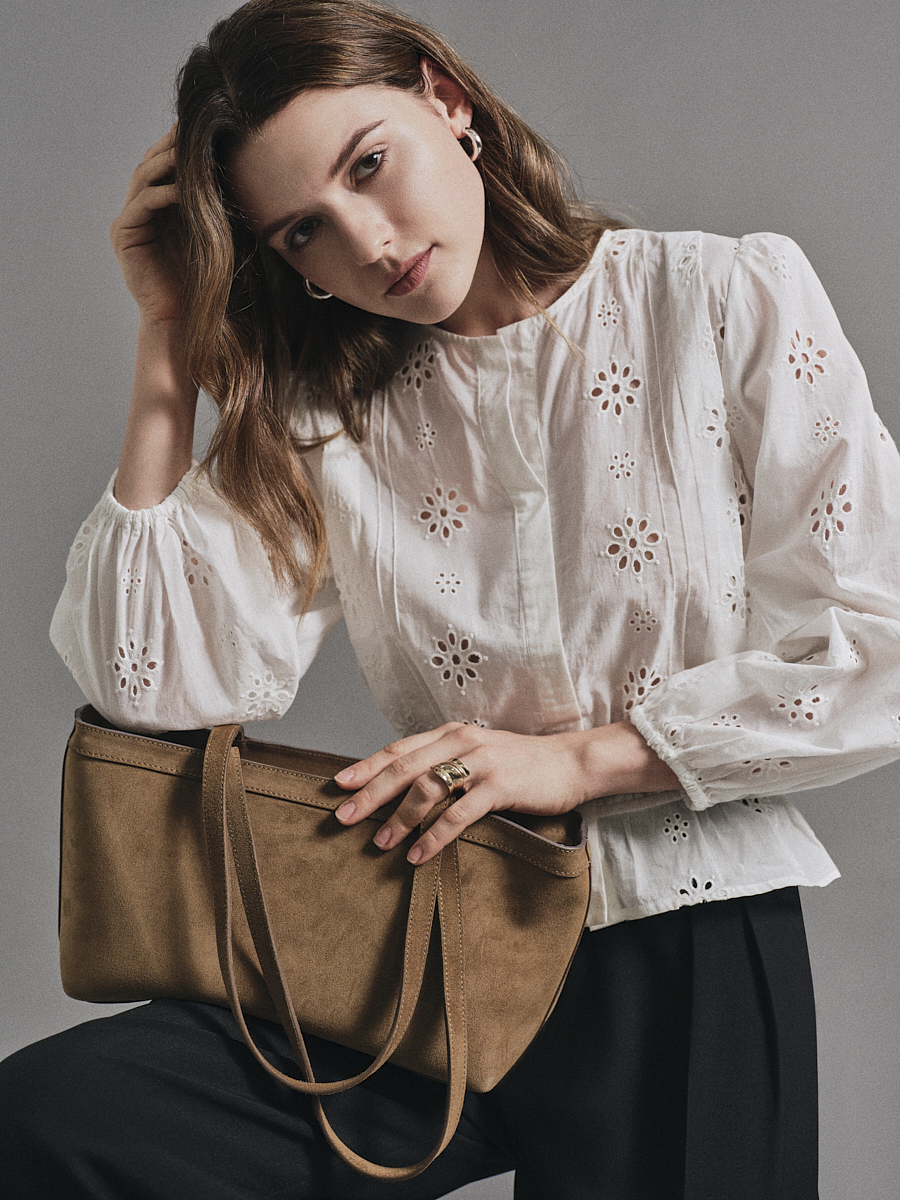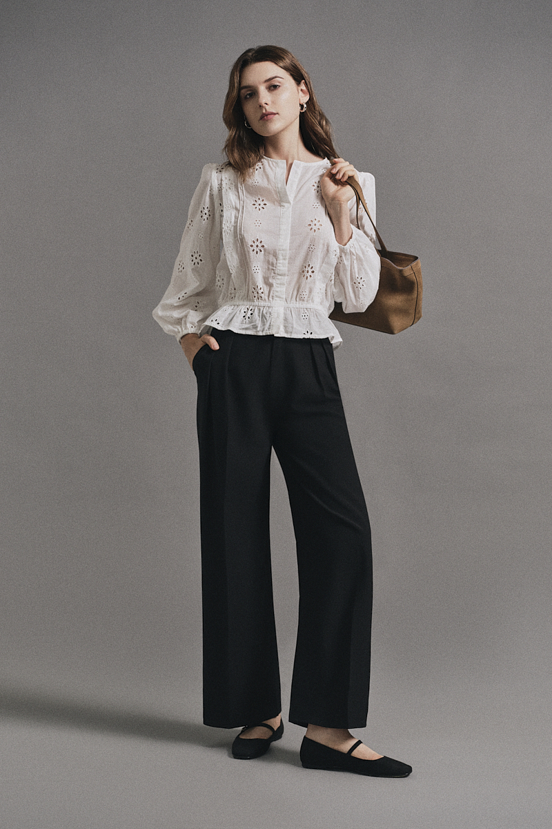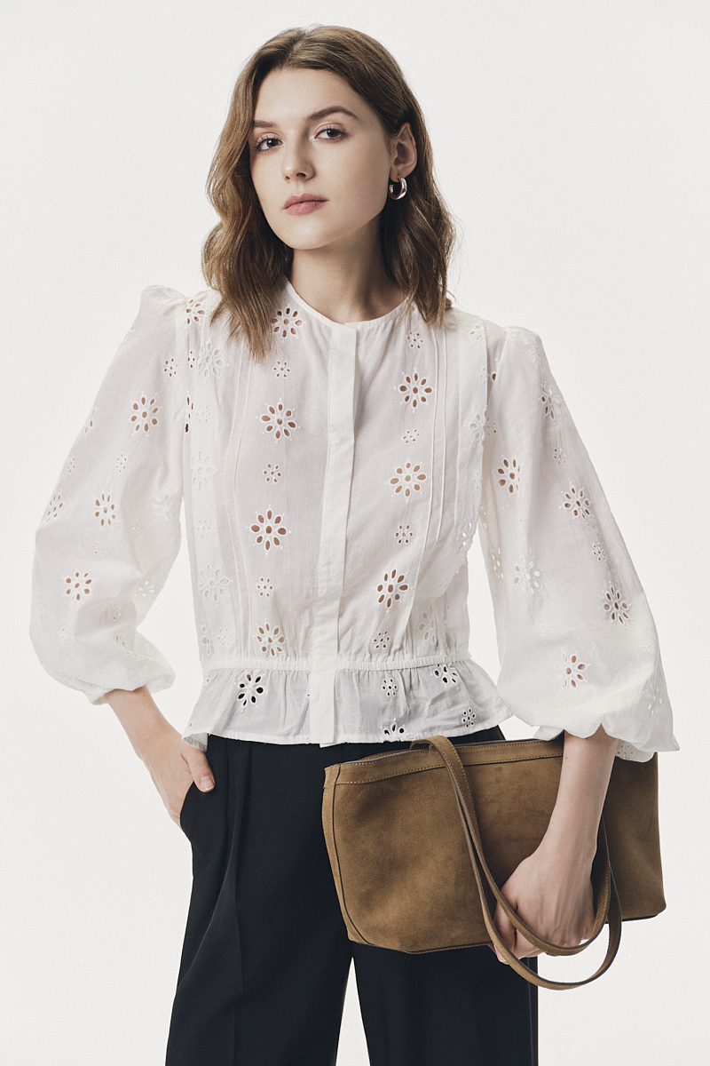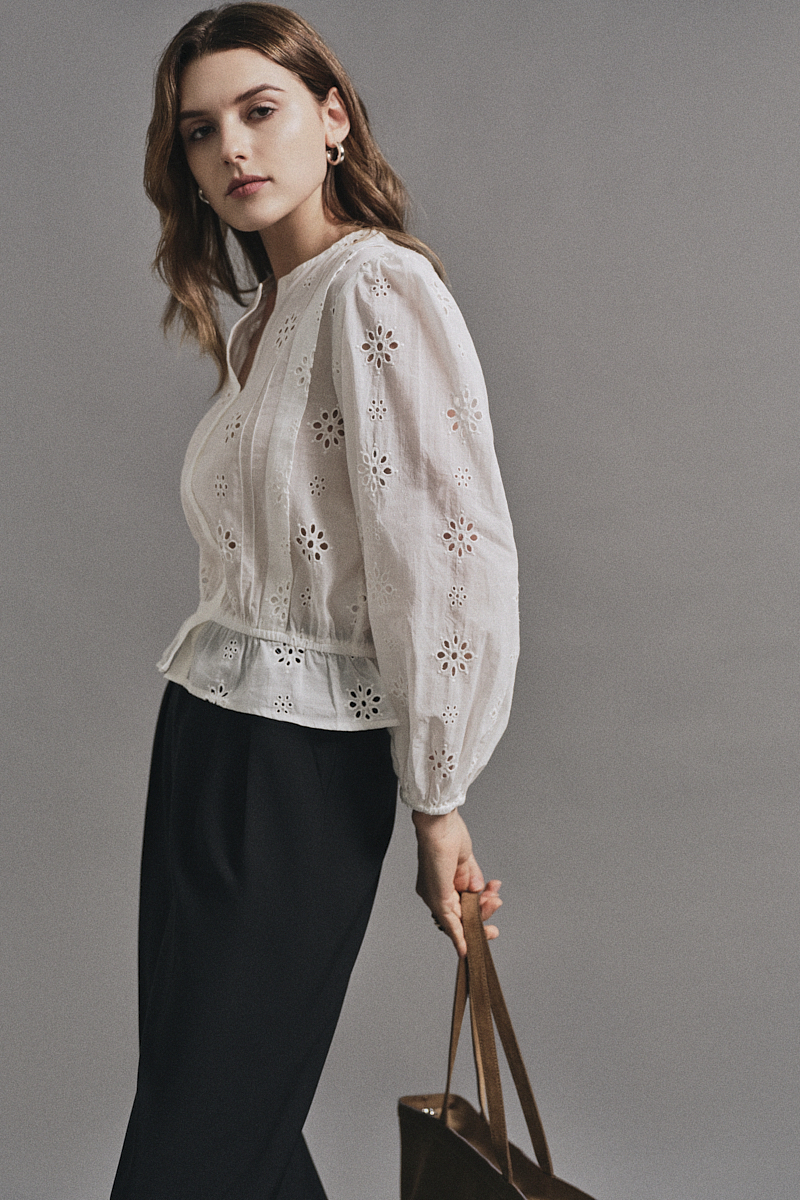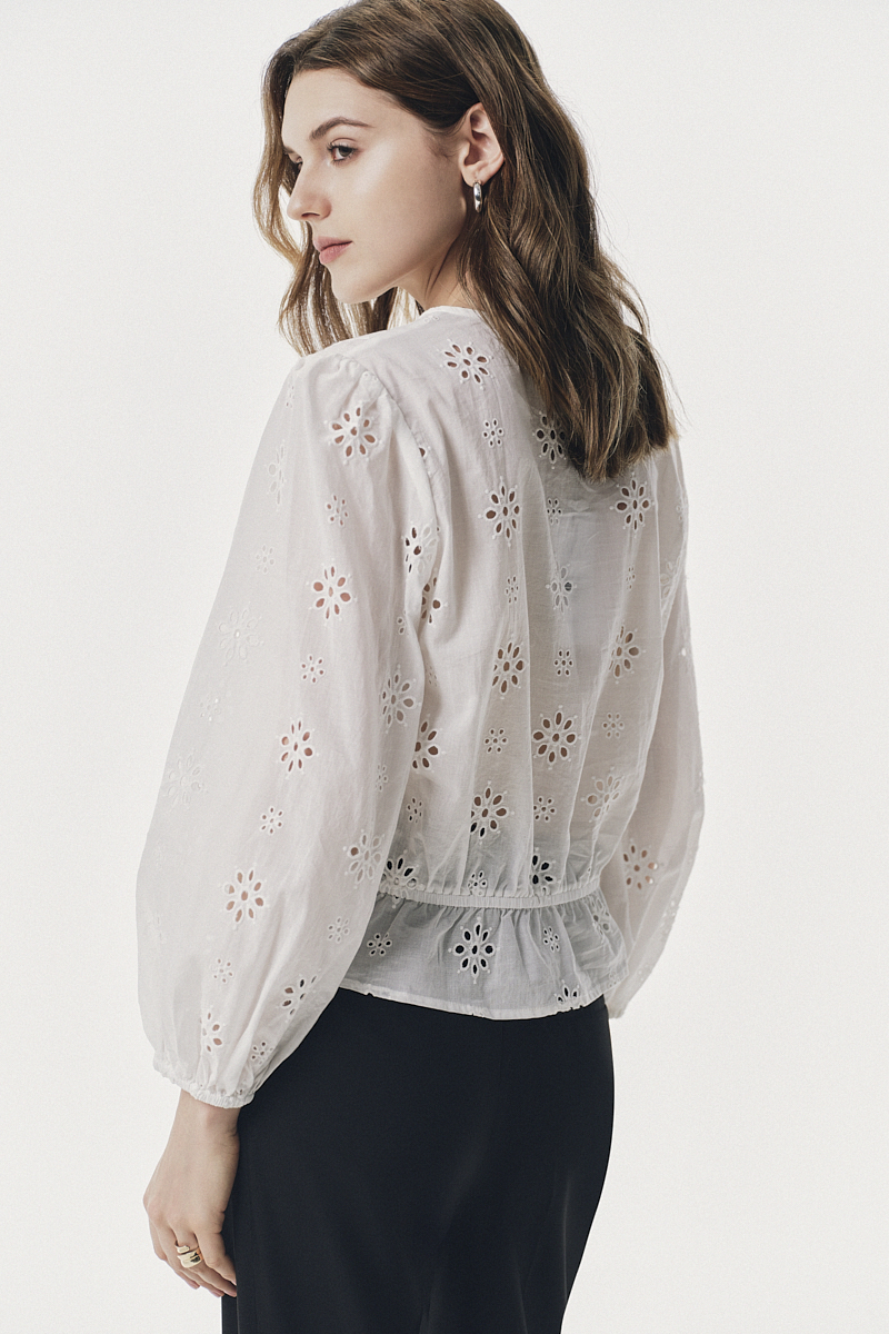 Áo kiểu dài tay thêu hoa bo chun
